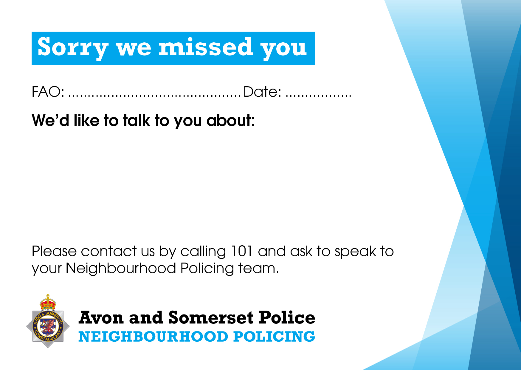 A6 Sorry we missed you card (NP001)
