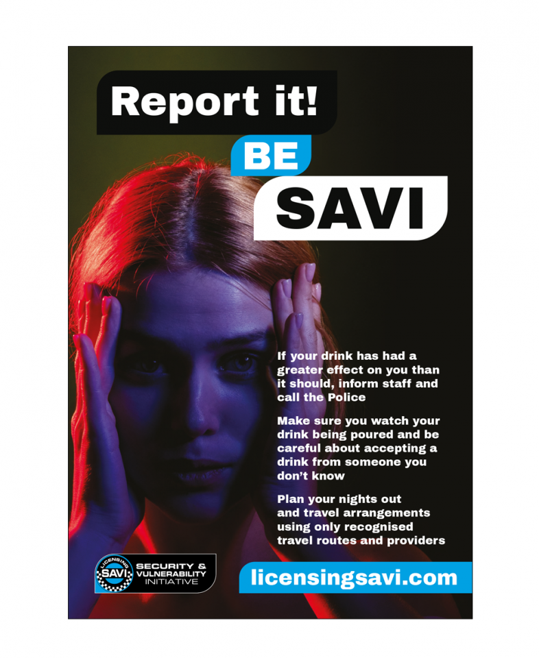 Drink spiking – Report it! – BE SAVI poster v4 (D013)
