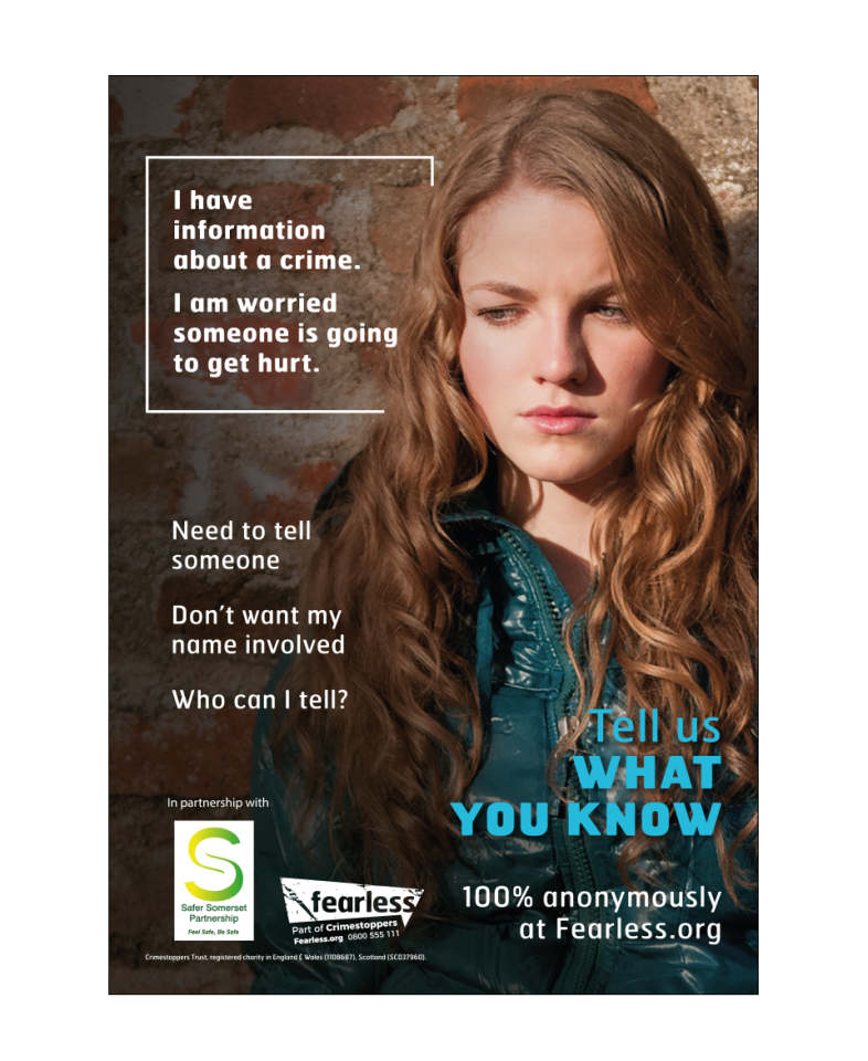 Fearless – Serious Violence A3 Poster with Safer Somerset logo – V1 (SV010)