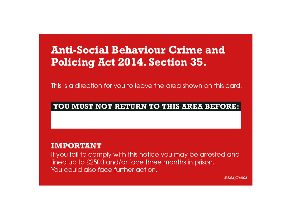 Glastonbury – ASB dispersal card (ASB026)