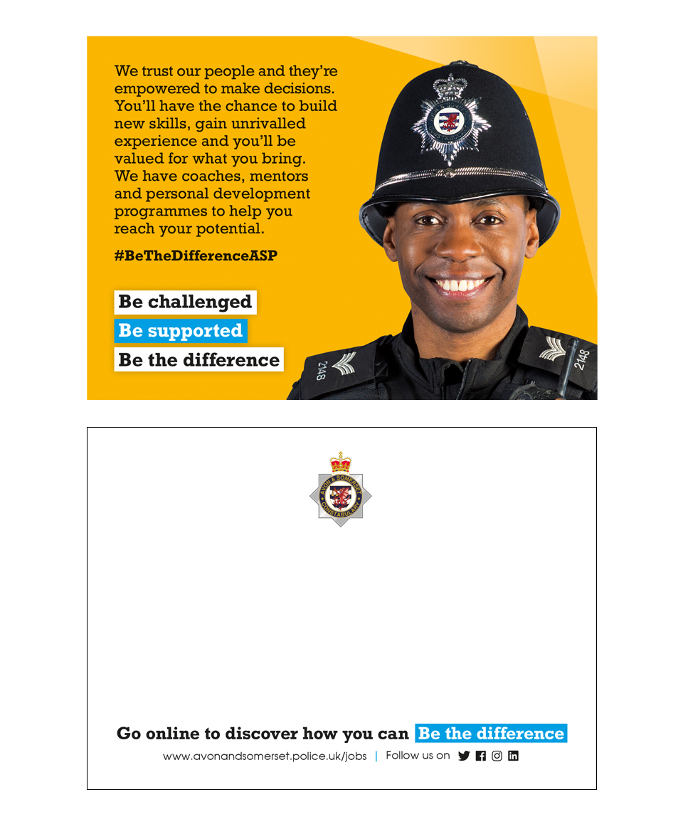 Police officer recruitment postcard – yellow (R019)