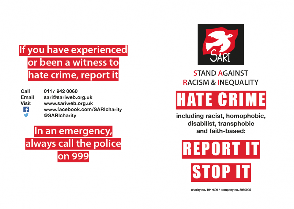 SARI Hate Crime Report It Stop It A5 Leaflet (HC010)