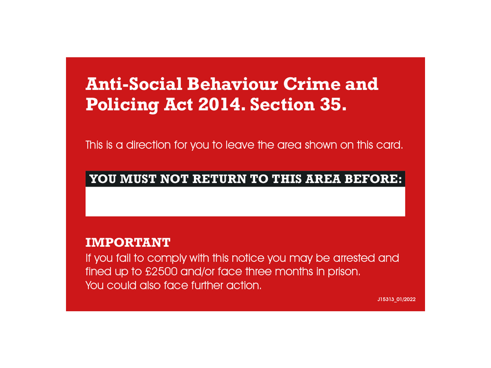 Worle – ASB dispersal card (ASB024)